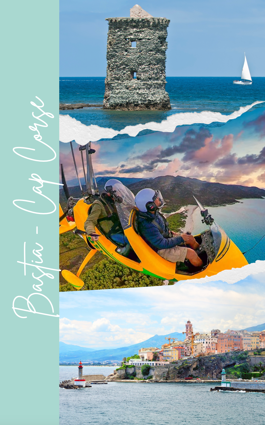 (Cap Corse, Bastia, Saint Florent, L'Île Rousse, Calvi, Porto, Bonifacio et Porto-Vecchio),